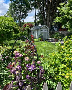 This Spanish Colonial Revival home, located in the heart of Princeton, was built circa 1930 and features a charming combination of formal and lush plantings. Designed for a small city plot, the garden delivers instant impact. Changes in level, and intentional focal points featuring tuteurs, a sweet garden shed, and other focal elements create a sense of depth and richness. A variety of entertainment spaces allow for guests to enjoy the serene views.